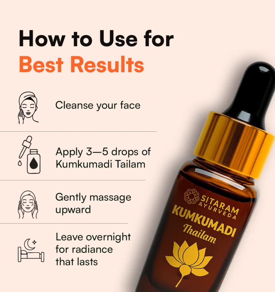 To restore glow and clarity in today’s fast-paced life, Kumkumadi Tailam offers a time-tested Ayurvedic solution for radiant, youthful skin.